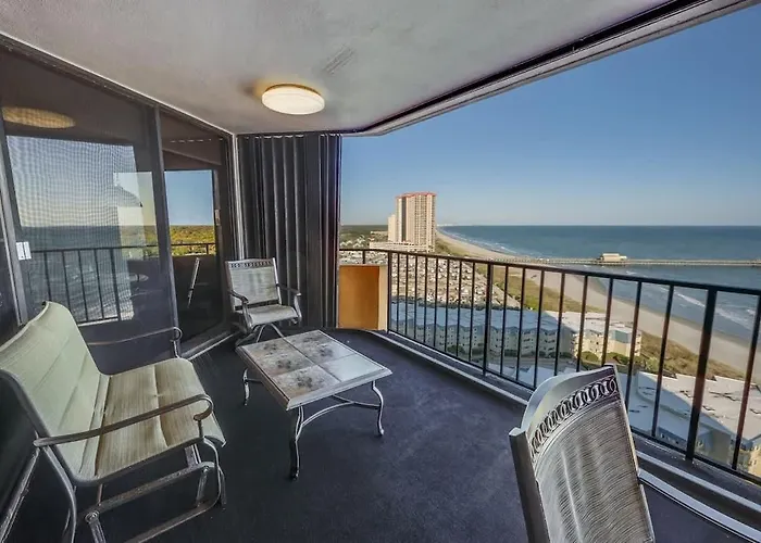 Situated only 1.9 km from the The Track, Newly Updated, Exclusive Condo, Spectacular Views! Myrtle Beach villa invites guests to relax at a patio.